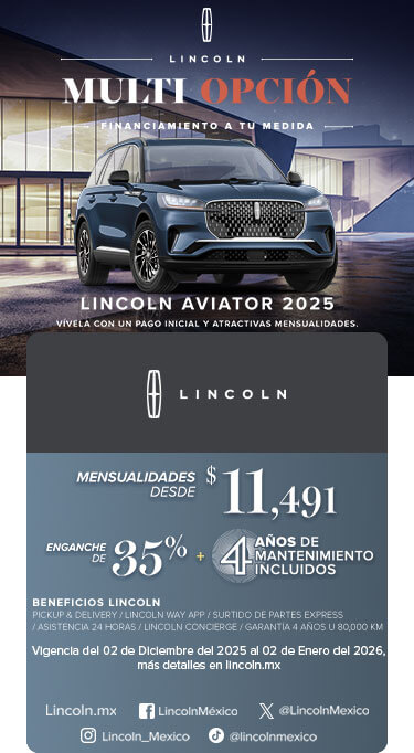 Con el fin de proveerle un servicio o un bien, así como hacer válida la garantía de su vehículo, realizar actividades de promoción y hacerle llegar información de nuestros socios de negocios, Lincoln podrá transferir sus datos personales tanto dentro como fuera de los Estados Unidos Mexicanos a sociedades subsidiarias, afiliadas o relacionadas con Lincoln, sus distribuidores autorizados y/o sus terceros proveedores de servicios con quienes tiene una relación jurídica, así como a autoridades competentes. No será necesario el consentimiento de los clientes o clientes potenciales de Lincoln cuando las transferencias se realicen a sociedades del mismo grupo de Lincoln o cuando dicha transferencia sea necesaria para prestarle un bien o servicio o mantener actualizados nuestros registros para responder sus consultas, hacer válida la garantía de su vehículo o hacerle llamados para revisión de su vehículo derivado de la relación comercial.